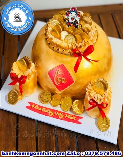 ✅ Mẫu bánh kem hũ vàng, bánh kem thần tài