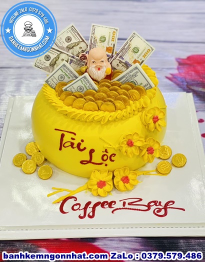 ✅ Mẫu bánh kem hũ vàng, bánh kem thần tài
